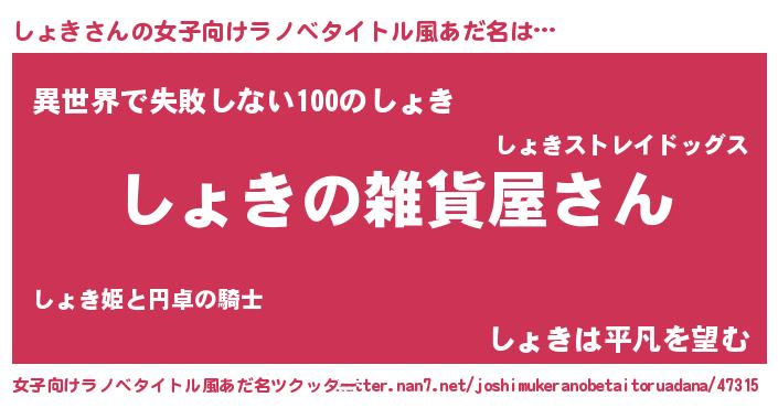 | 男性向けラノベタイトル風あだ名 | 『やはりしょきの青春ラブコメはまちがっている 』 |