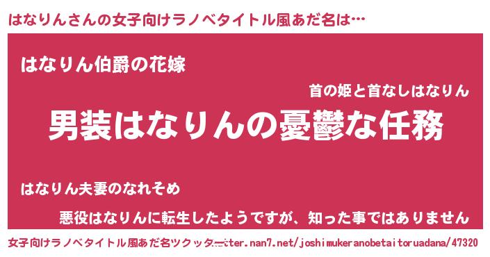 | 胡散臭い通販商品みたいなあだ名 | 『世界が平和になる高級そうな絵画…その名も「はなりん」』 |