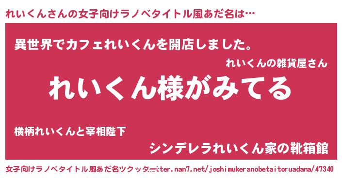 | ヘコむあだ名 | 『れいぷりん』『れいくん(笑)』 |