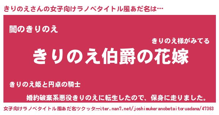 | 男性向けラノベタイトル風あだ名 | 『やはりきりのえの青春ラブコメはまちがっている 』 |