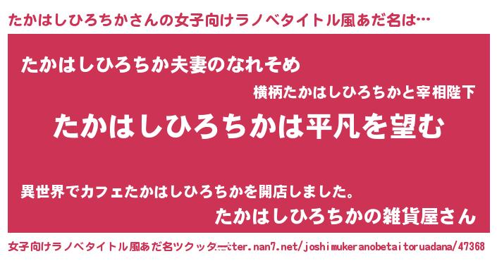 | 欧米人風あだ名 | 『ウサインたかはしひろちか』 |