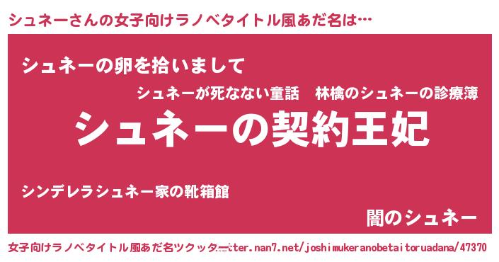 | 胡散臭い通販商品みたいなあだ名 | 『来世でも幸せになれる健康食品…その名も「シュネー」』 |