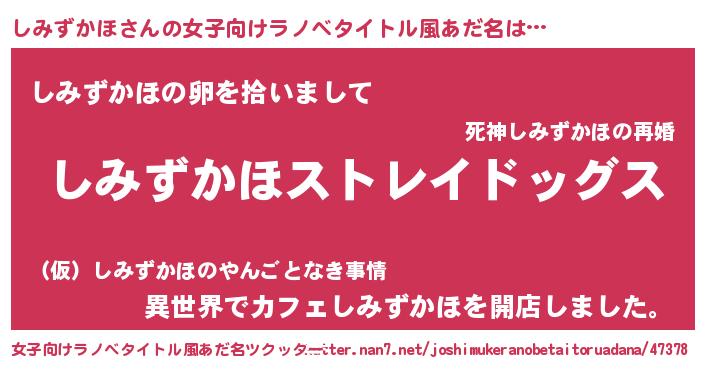| 意味不明あだ名 | 『自称しみずかほ』『永久保存しみずかほ』 |