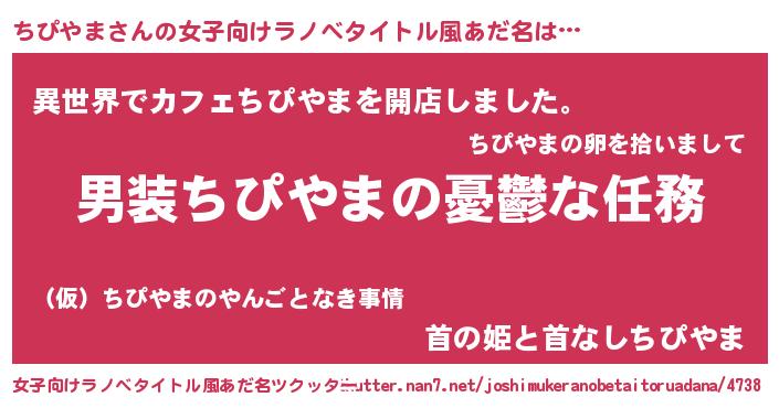 | ヒーロー風カッコイイあだ名 | 『ネオチピヤマ』『天弓騎士チピ』 |