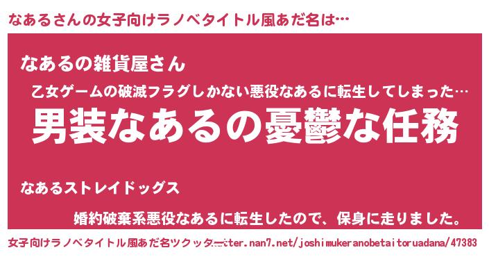 | ヒーロー風カッコイイあだ名 | 『ウルトラなあるマン』『仮面ナアダー』 |