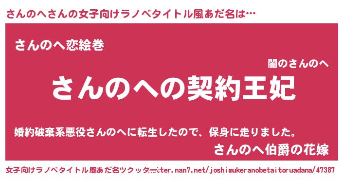 | 胡散臭い通販商品みたいなあだ名 | 『来世でも幸せになれる健康食品…その名も「さんのへ」』 |