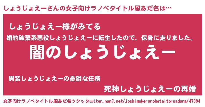 | 意味不明あだ名 | 『自称しょうじょえー』 |