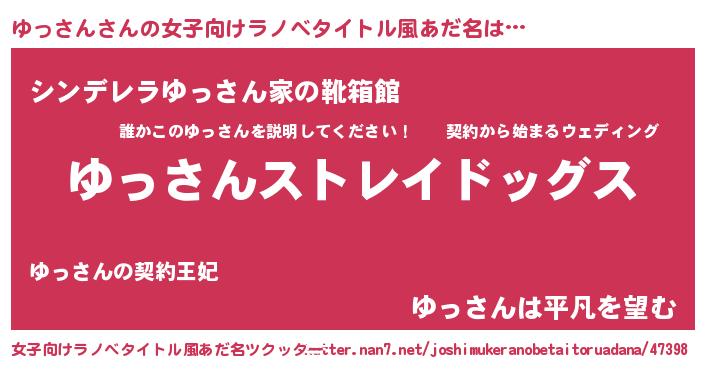 | ヒーロー風カッコイイあだ名 | 『究極戦士ユッサン』『暗黒騎士ユッ』 |