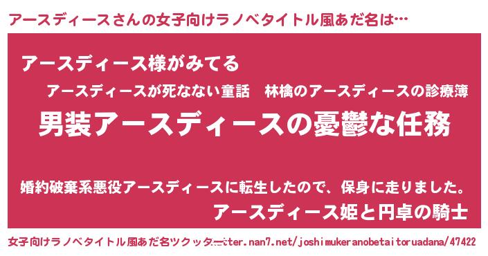 | 男性向けラノベタイトル風あだ名 | 『冴えないアースディースの育てかた』 |