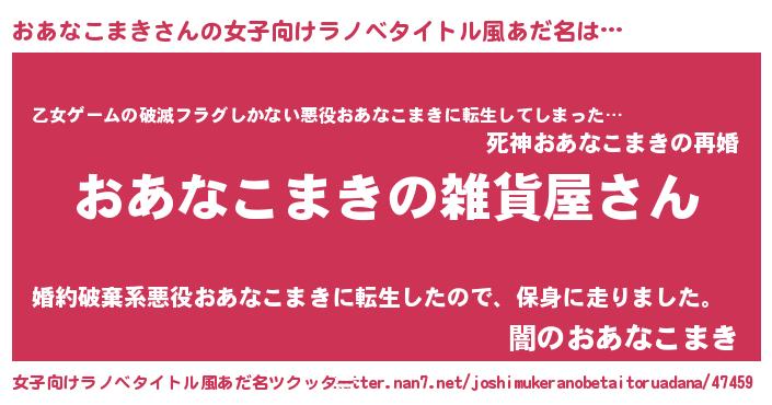 | 胡散臭い通販商品みたいなあだ名 | 『幸せが訪れる高級そうな絵画…その名も「おあなこまき」』 |