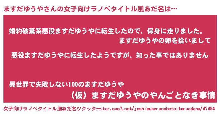 | 意味不明あだ名 | 『住所不定無職ますだゆうや(62歳)』 |