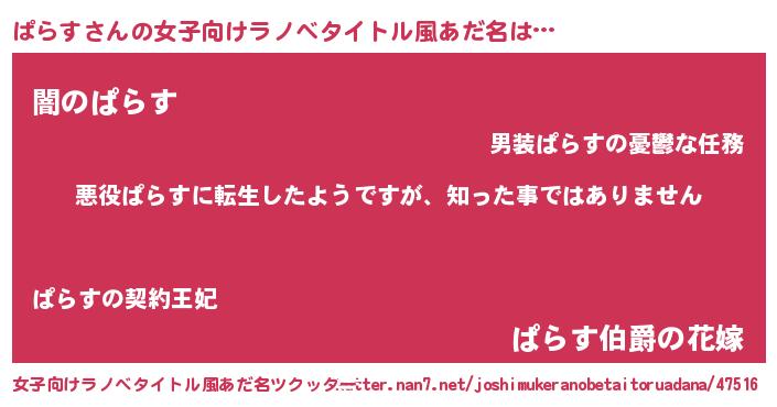 | 胡散臭い通販商品みたいなあだ名 | 『あなたにだけ特別に提供する世界で10本だけ現存している希少なブランデー…その名も「ぱらす」』 |