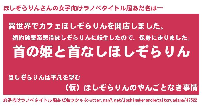 | 胡散臭い通販商品みたいなあだ名 | 『来世でも幸せになれる健康食品…その名も「ほしぞらりん」』 |