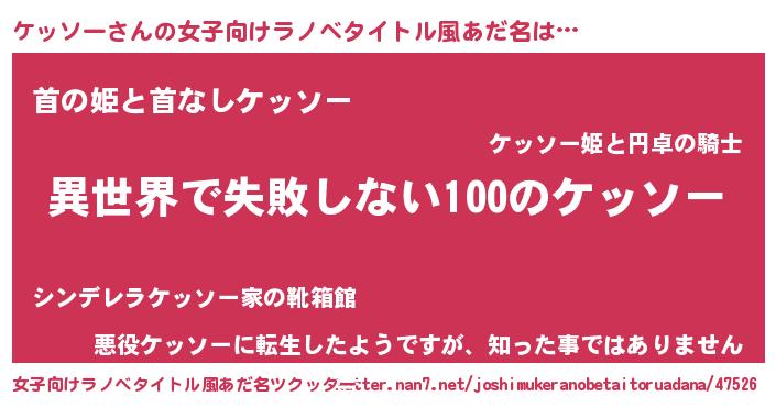 | 男性向けラノベタイトル風あだ名 | 『ケッソーという概念が存在しない退屈な世界 』 |