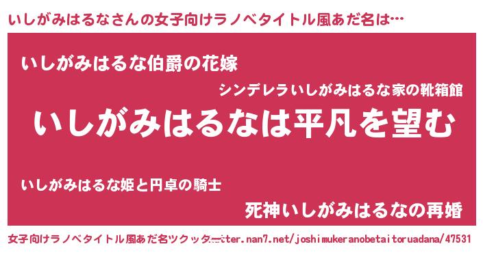 | 男性向けラノベタイトル風あだ名 | 『ダンジョンにいしがみはるなを求めるのは間違っているだろうか』 |