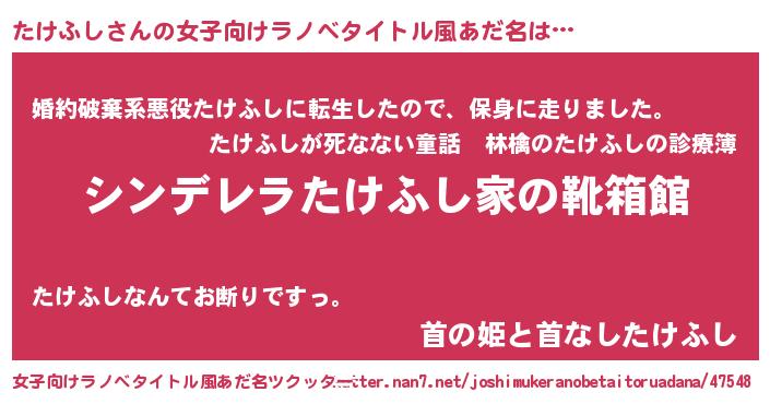| ヒーロー風カッコイイあだ名 | 『仮面タケダー』『ウルトラ戦士タケフシ』 |