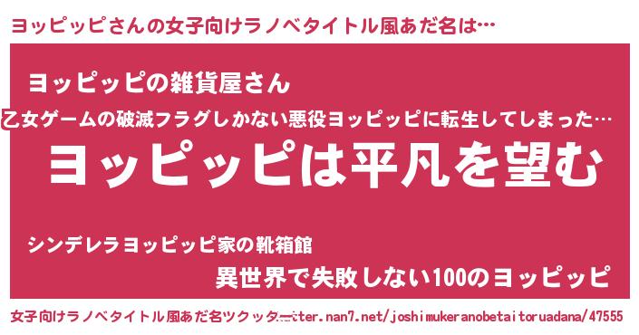 | 男性向けラノベタイトル風あだ名 | 『ダンジョンにヨッピッピを求めるのは間違っているだろうか』 |