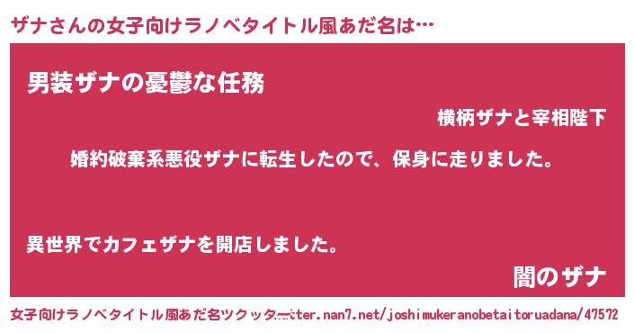 | 男性向けラノベタイトル風あだ名 | 『ザナスレイヤー』 |