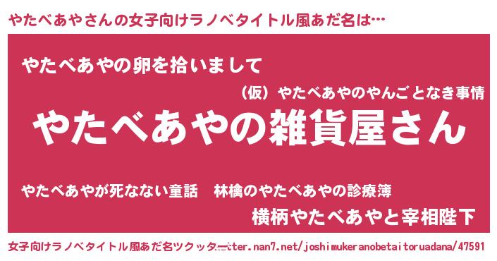 | 男性向けラノベタイトル風あだ名 | 『やはりやたべあやの青春ラブコメはまちがっている 』 |