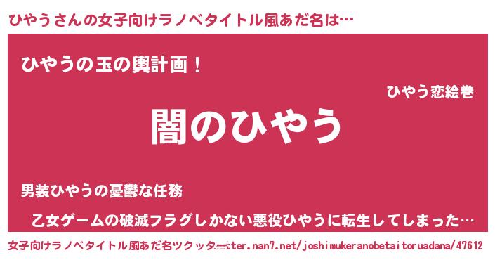 | ヘコむあだ名 | 『なまこ酢』『ひやう(笑)』『ひやお』 |