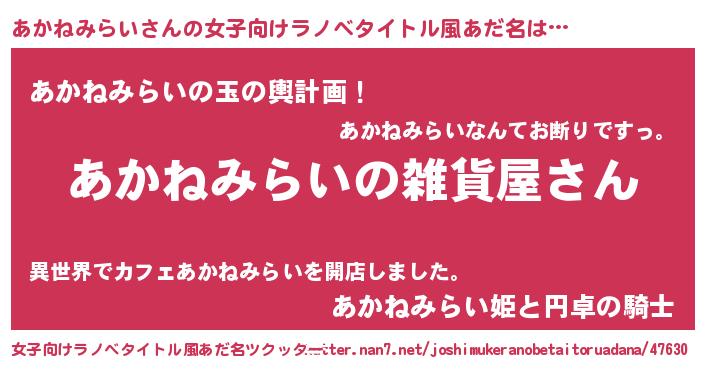 | 意味不明あだ名 | 『あかねみらいフォーエバー』 |