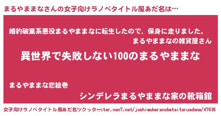 | 男性向けラノベタイトル風あだ名 | 『まるやままなという概念が存在しない退屈な世界 』 |