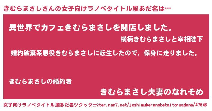 | 可愛いあだ名 | 『きむぷりん』『きむらまさしママ』 |