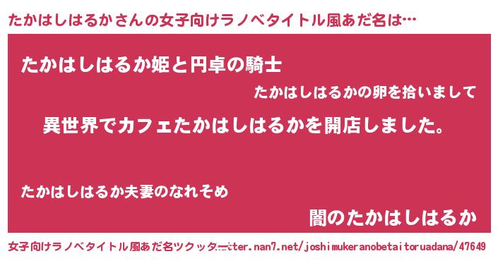 | ヘコむあだ名 | 『たかはしはるか(小並感)』『たかふぇ~』 |