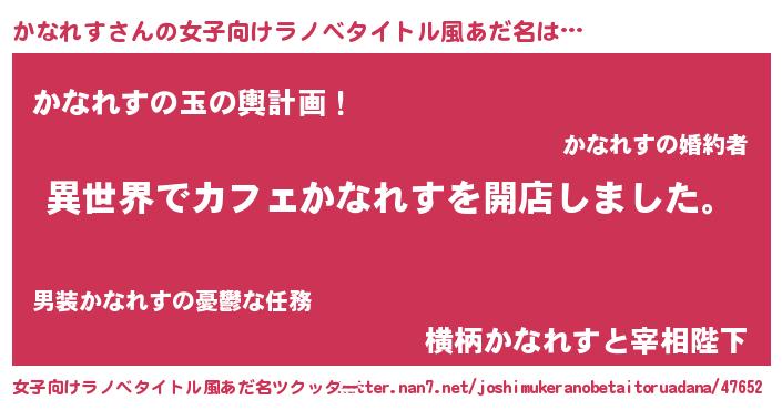 | 男性向けラノベタイトル風あだ名 | 『誰もが恐れるあのかなれすが、ぼくの専属メイドになるようです。』 |