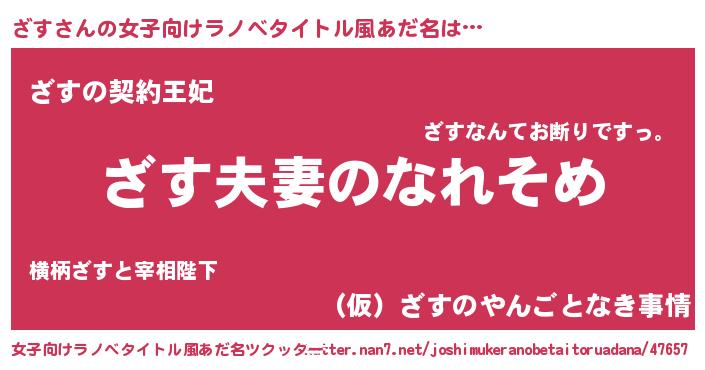 | 男性向けラノベタイトル風あだ名 | 『おまえをオタクにしてやるから、俺をざすにしてくれ! 』 |
