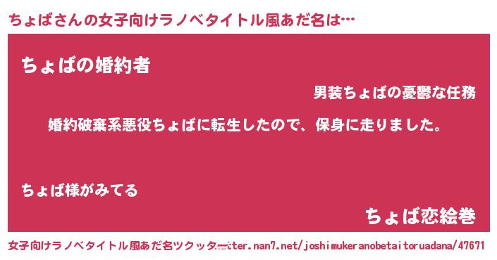| 男性向けラノベタイトル風あだ名 | 『チョバスレイヤー』 |