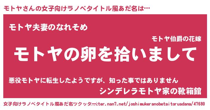 | 胡散臭い通販商品みたいなあだ名 | 『伝統あるペンダント…その名も「モトヤ」』 |