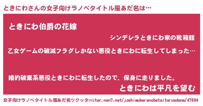 | ヒーロー風カッコイイあだ名 | 『仮面トキダー』『ウルトラときにわマン』 |