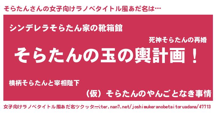 | 胡散臭い通販商品みたいなあだ名 | 『億万長者になれるブレスレット…その名も「そらたん」』 |