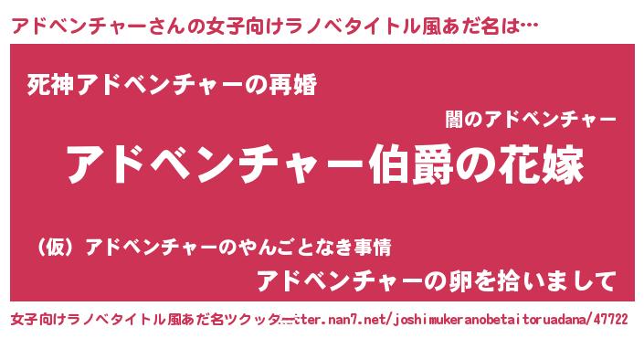 | ファンタジー風あだ名 | 『エターナルアドベンチャーー』 |