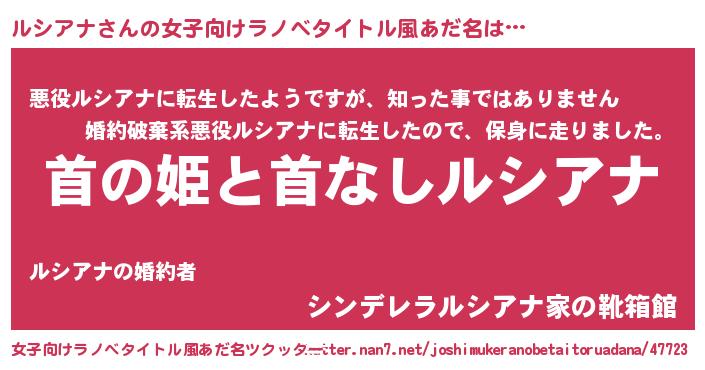 | 意味不明あだ名 | 『住所不定無職ルシアナ(8歳)』 |