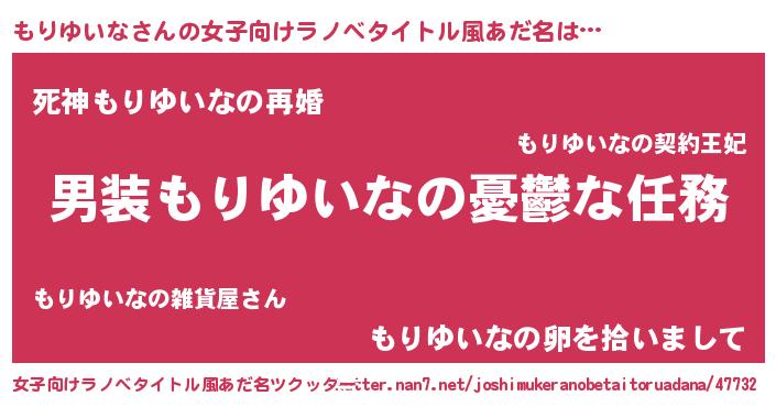 | ヒーロー風カッコイイあだ名 | 『慈愛の使者もりゆいな』『天弓騎士モリ』 |