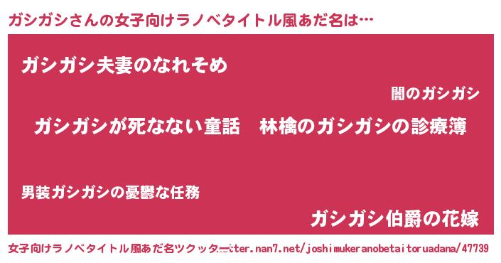 | 意味不明あだ名 | 『住所不定無職ガシガシ(12歳)』 |