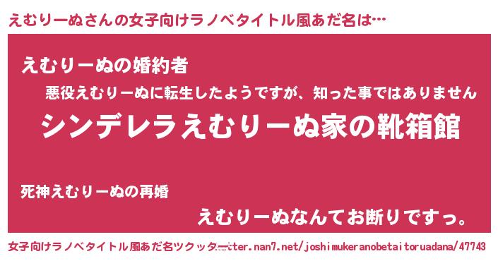 | 男性向けラノベタイトル風あだ名 | 『緋弾のエムリーヌ』 |
