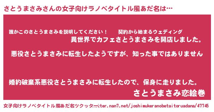 | 意味不明あだ名 | 『住所不定無職さとうまさみ(81歳)』 |