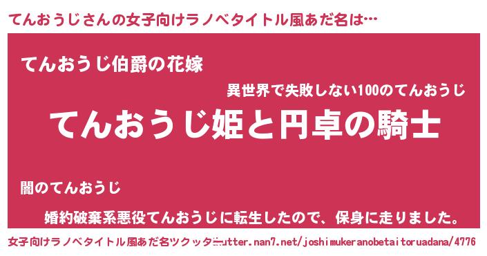 | 男性向けラノベタイトル風あだ名 | 『テンオウジアートオンライン』 |