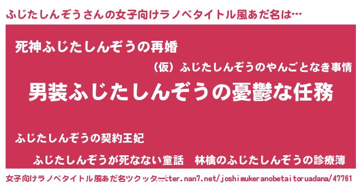 | 胡散臭い通販商品みたいなあだ名 | 『お金では代えられない隕石のかけら…その名も「ふじたしんぞう」』 |