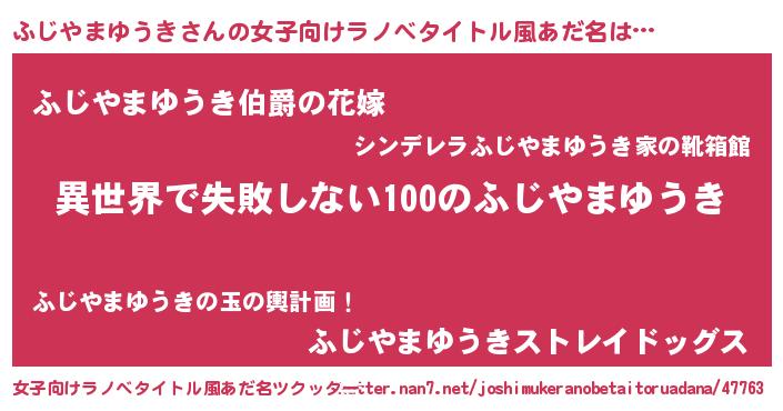 | 男性向けラノベタイトル風あだ名 | 『ふじやまゆうきという概念が存在しない退屈な世界 』 |
