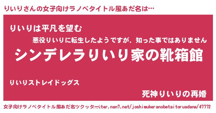 | 意味不明あだ名 | 『とにかく怪しいりいり』『自称りいり』 |
