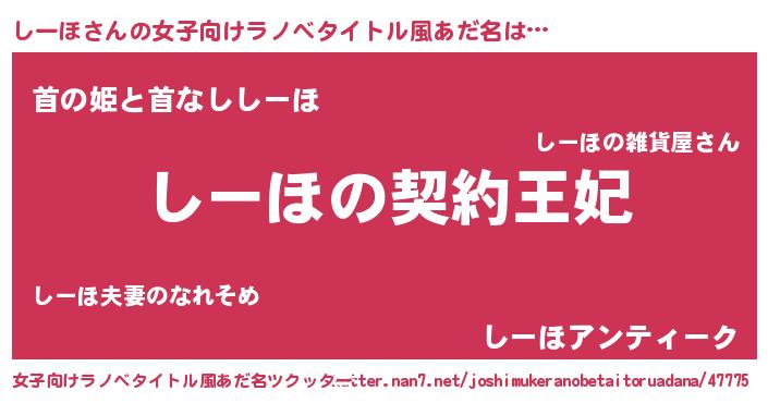 | 意味不明あだ名 | 『永久保存しーほ』『自称しーほ』 |