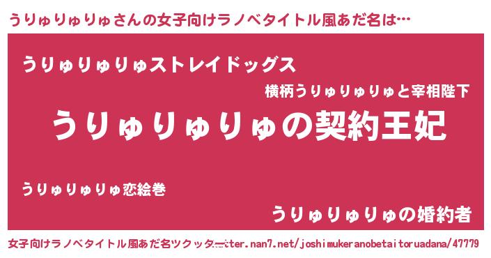 | 胡散臭い通販商品みたいなあだ名 | 『来世でも幸せになれる水素水…その名も「うりゅりゅりゅ」』 |
