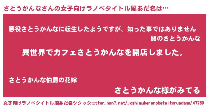 | 意味不明あだ名 | 『永久保存さとうかんな』 |