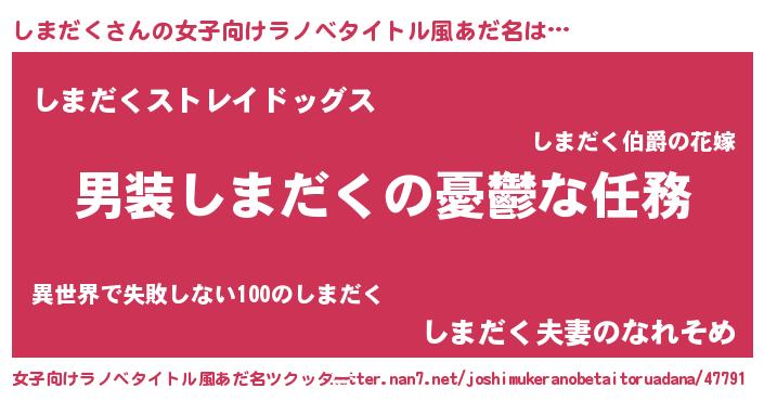 | 胡散臭い通販商品みたいなあだ名 | 『芸能人もオススメする高麗人参…その名も「しまだく」』 |