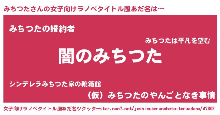 | 男性向けラノベタイトル風あだ名 | 『Re:みちつたから始める異世界生活』 |