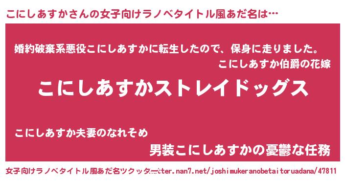 | 意味不明あだ名 | 『自称こにしあすか』 |